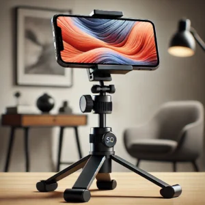 Sturdy and adjustable phone stand & tripod for video calls, streaming, and photography. Lightweight, stable, and universally compatible. Perfect for content creators!