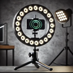 High-quality ring light with adjustable brightness, tripod stand, and phone holder. Perfect for videos, live streaming, and photography. Get yours today!